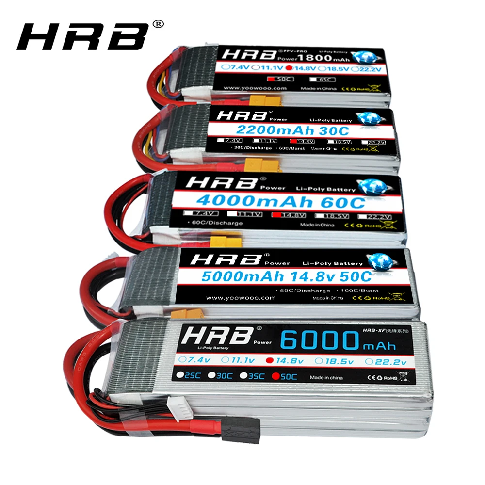 Buy Now HRB 4S Lipo Battery 14.8v 5000mah 6000mah 4S 2200mah 3300mah 4200amh 12000mah 22000mah RC lipo Dean