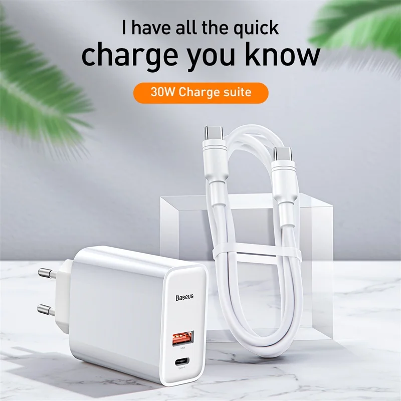 Baseus USB Charger Type-C PD Quick Charge For iPhone 11 Pro Max X Adapter With PD Cable Fast Charging Phone Charger For Samsung