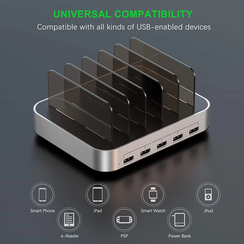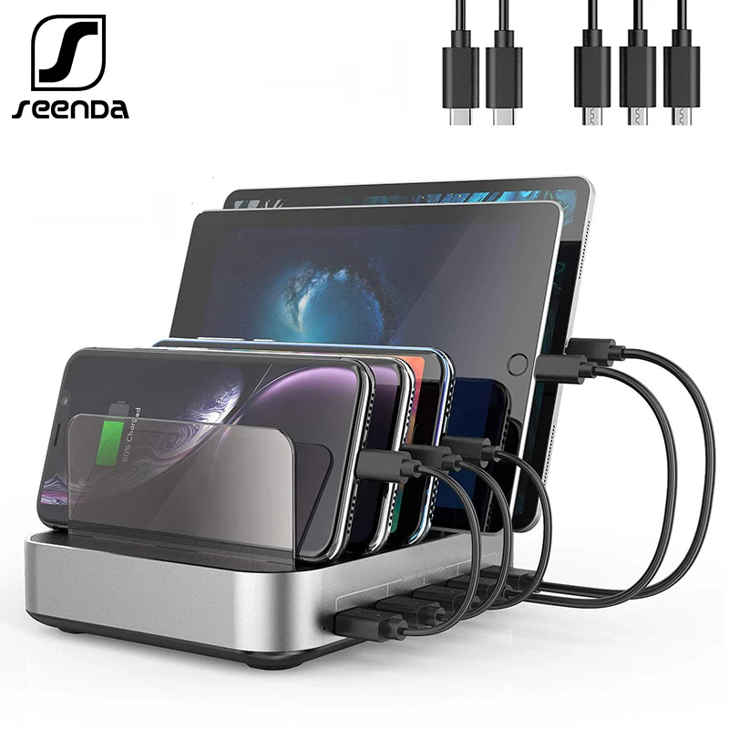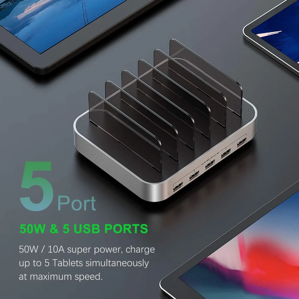Hot Sale SeenDa 5 Ports USB Charging Station Dock with Holder 50W 10A Desktop USB Charger for Mobile Phone T