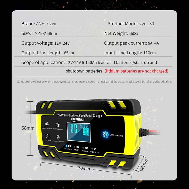Best Seller 12V/24V Full Automatic Car Battery Charger Power Pulse Repair Chargers Wet Dry Lead Acid Battery-ch