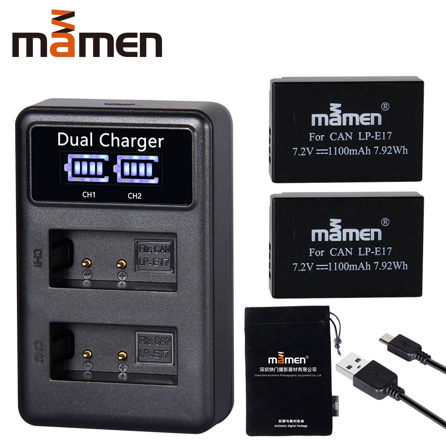 Best Seller Mamen 2pcs LP-E17 LPE17 LP E17 Digital Battery Pack +USB LCD Dual Charger for Canon EOS M3 M5 M6 Ki