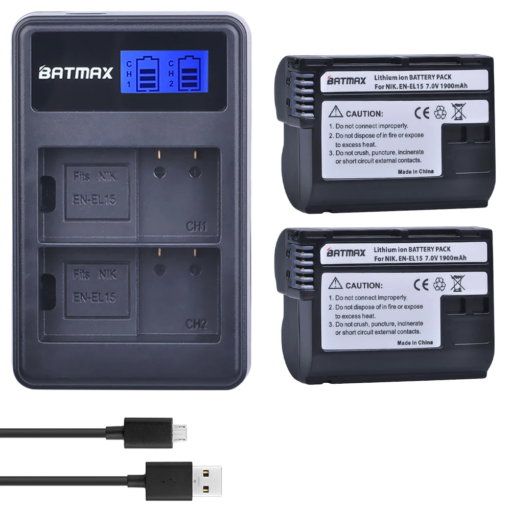 2Pcs EN-EL15 EN EL15 EL15 Camera Battery + LCD USB Charger Type C Port for Nikon D600 D610 D800 D800E D810 D7000 D7100 D7200 V1