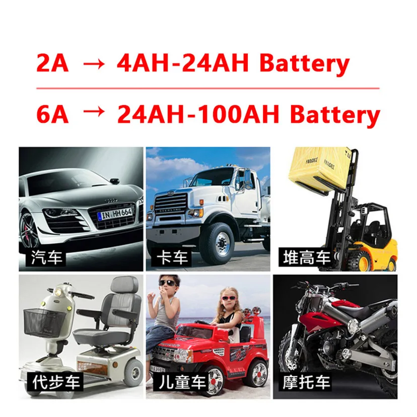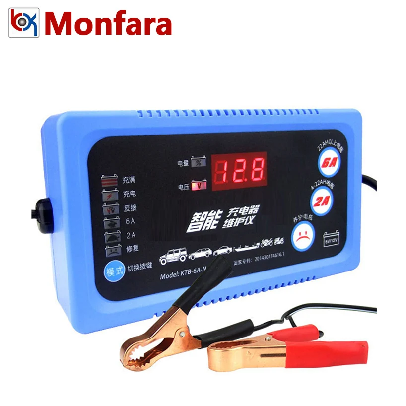 Big Promo 6V 12V Smart Car Motorcycle Battery Charger Full Automatic 2A 6A Lead-Acid AGM GEL Dry Batteries Po