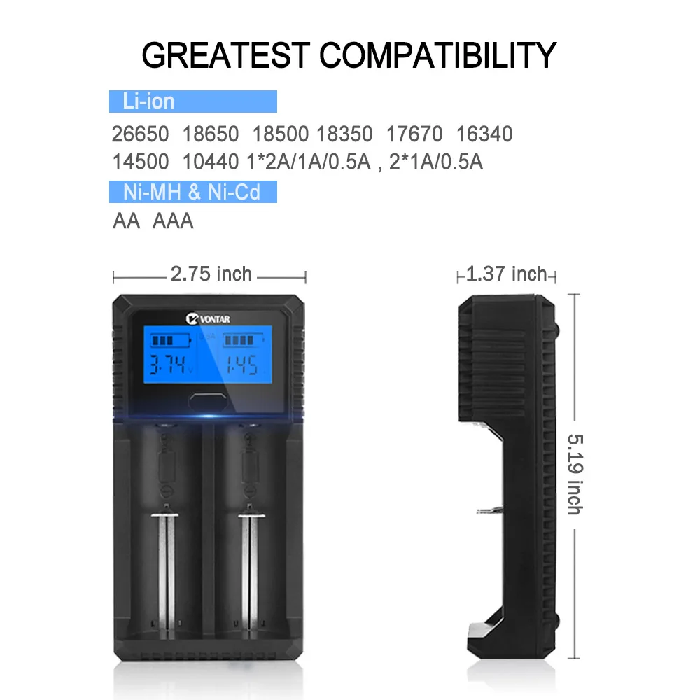 Big Promo VONTAR Smart LCD USB Battery Charger Smart for 26650 18650 18500 18350 17670 16340 14500 10440 lith