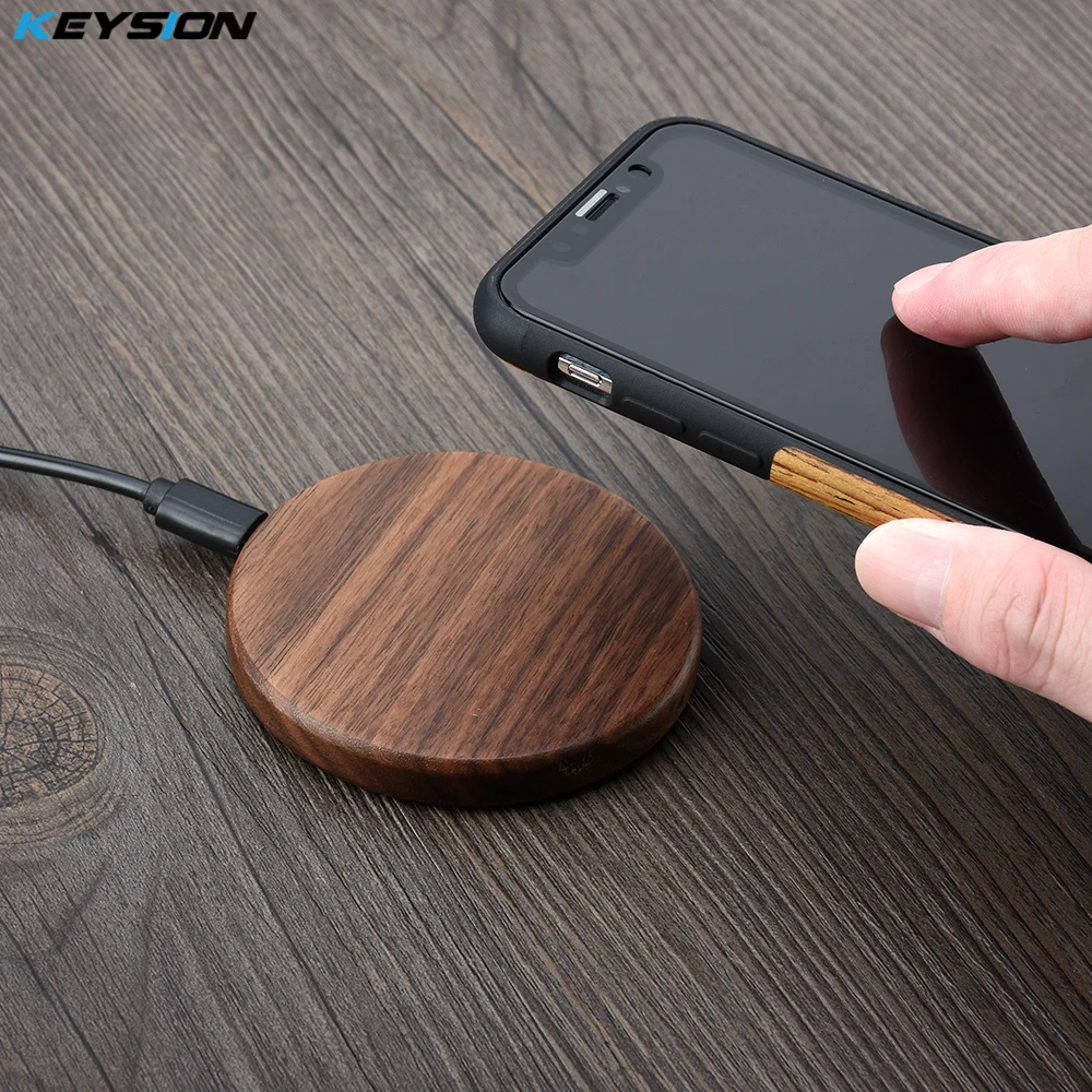 KEYSION Wooden 10W Qi Fast Wireless Charger for iPhone 11 XS Max XR 8 Plus Wireless Charging Pad for Samsung S10 S9 Xiaomi mi 9