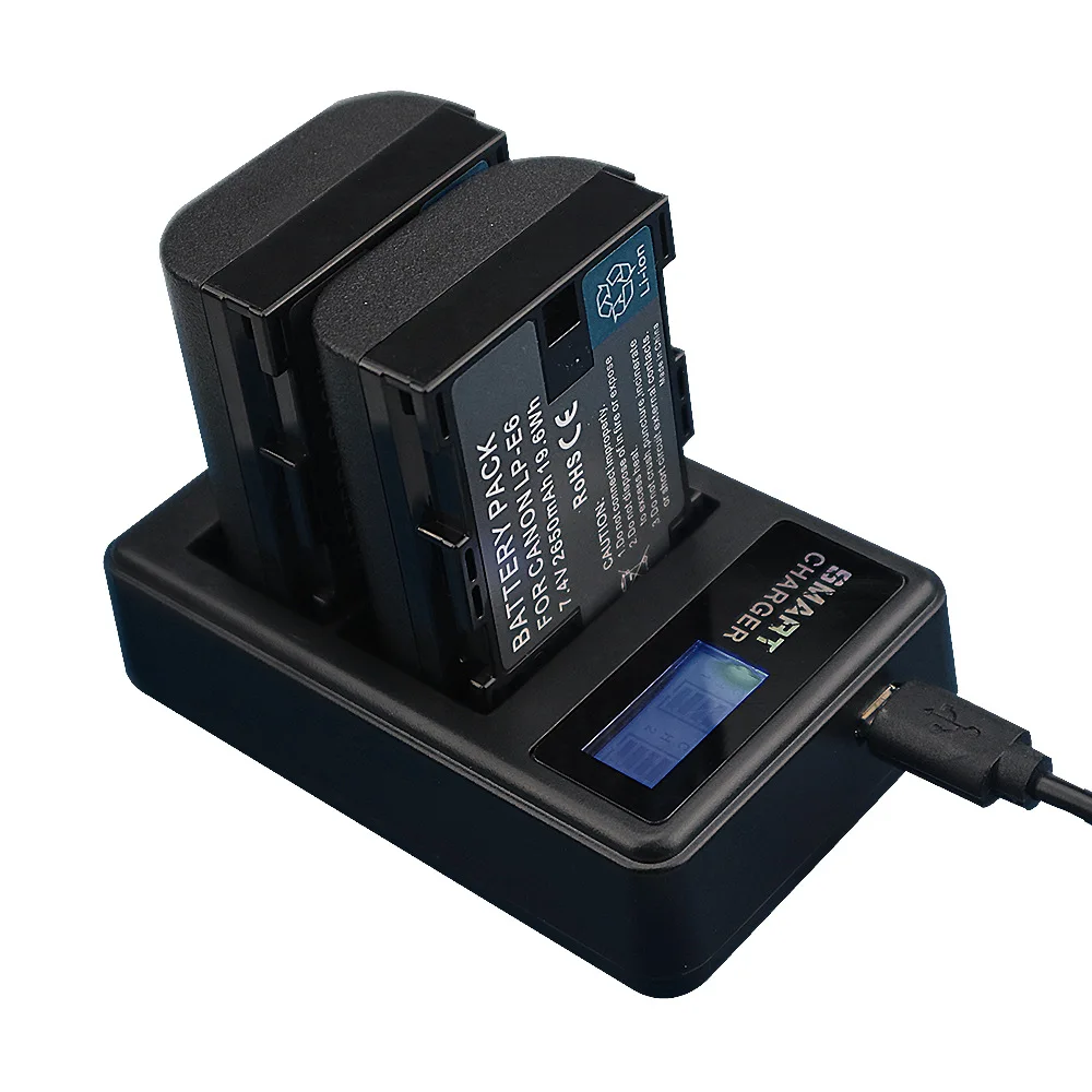 LED Charger + 2650mAh LP E6 LPE6 LP-E6 E6N Digital Camera Battery for EOS 6D 7D 5D Mark II III IV 5D 60D 60Da 70D 80D 5DS 5DSR