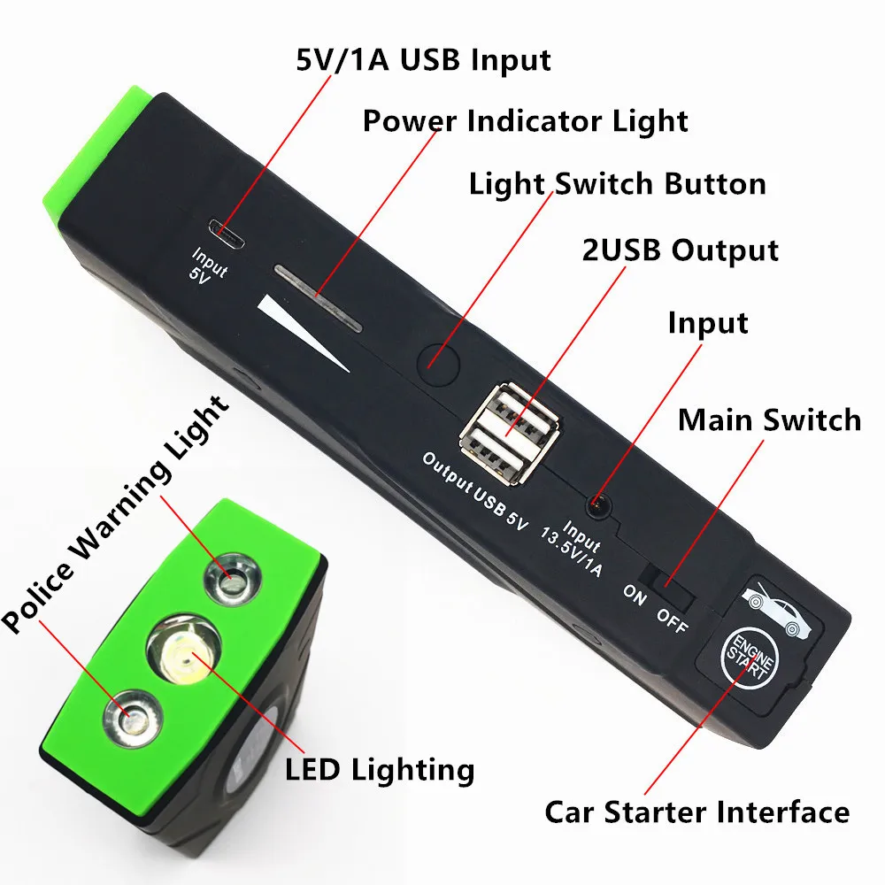 High Power 12V 1500A Starting Device Portable Car Jump Starter Petrol Diesel Car Charger For Car Battery Booster Car Starter LED