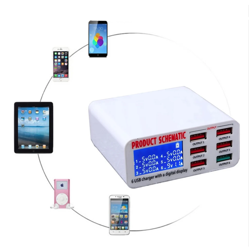 Usb Hub 5 Port USB QC 3.0 Quick Charger 5V 10A AC 100-240V LCD Voltage Current Display For IPhone IPad Samsung +EU Plug